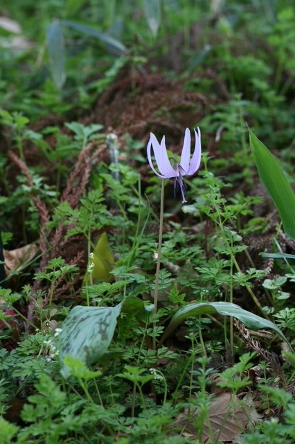 NEWS本学講義棟1号館とグラウンドの間に広がる森林ビオトープ「つるりん」には、春を彩るカタクリの小さな群落があります。