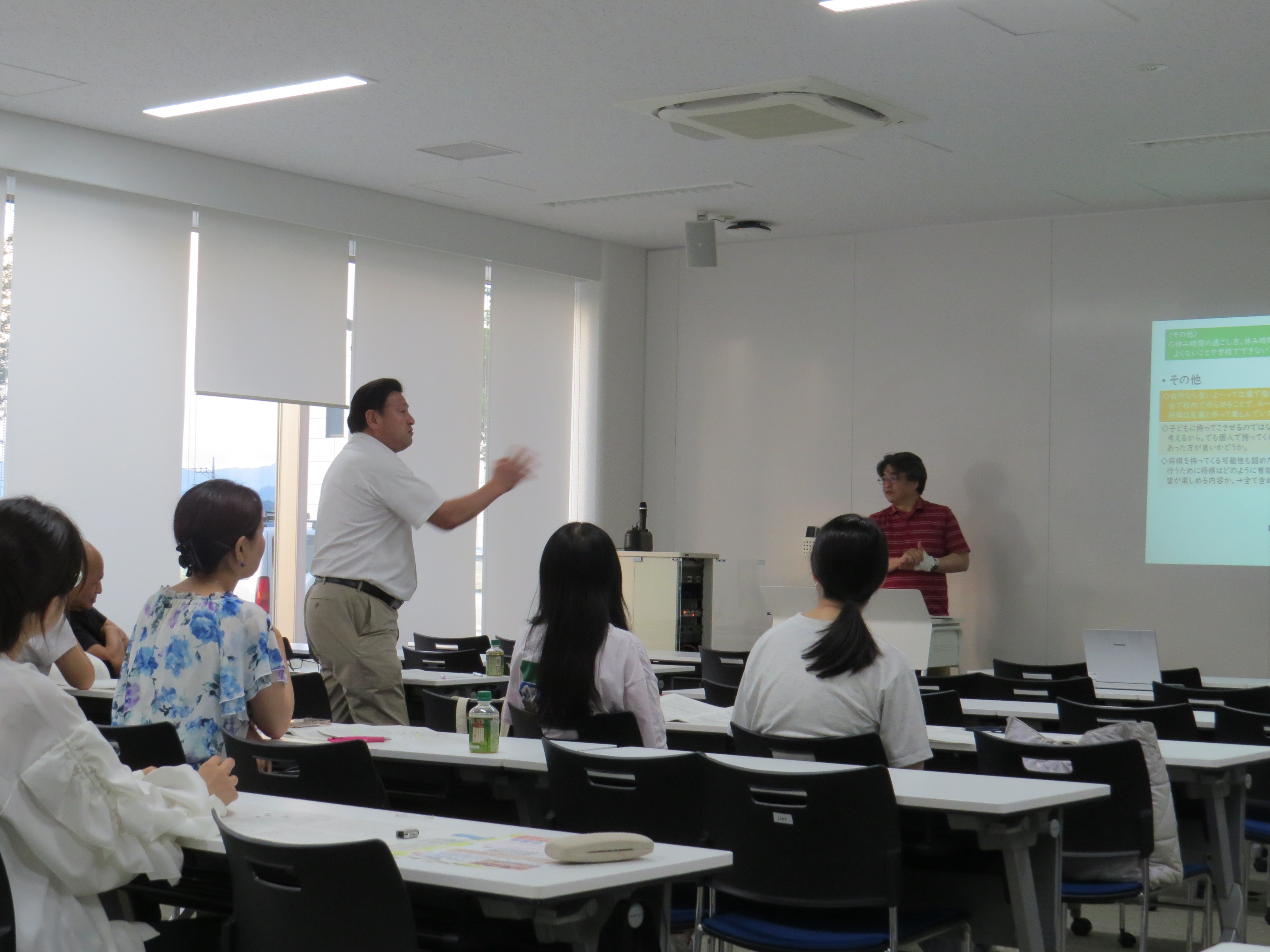 ​「改めて「学級」という場を考える…「教師の視点」と「子どもの視点」」や、「多様な関係と関わり方を学ぶ場としての「学級」」、「子どもの声から学級の活動を構想する」、「・子どもの生活をつかむ…子ども理解の視点」等についてペアワークや情報交換をしながら考えました。