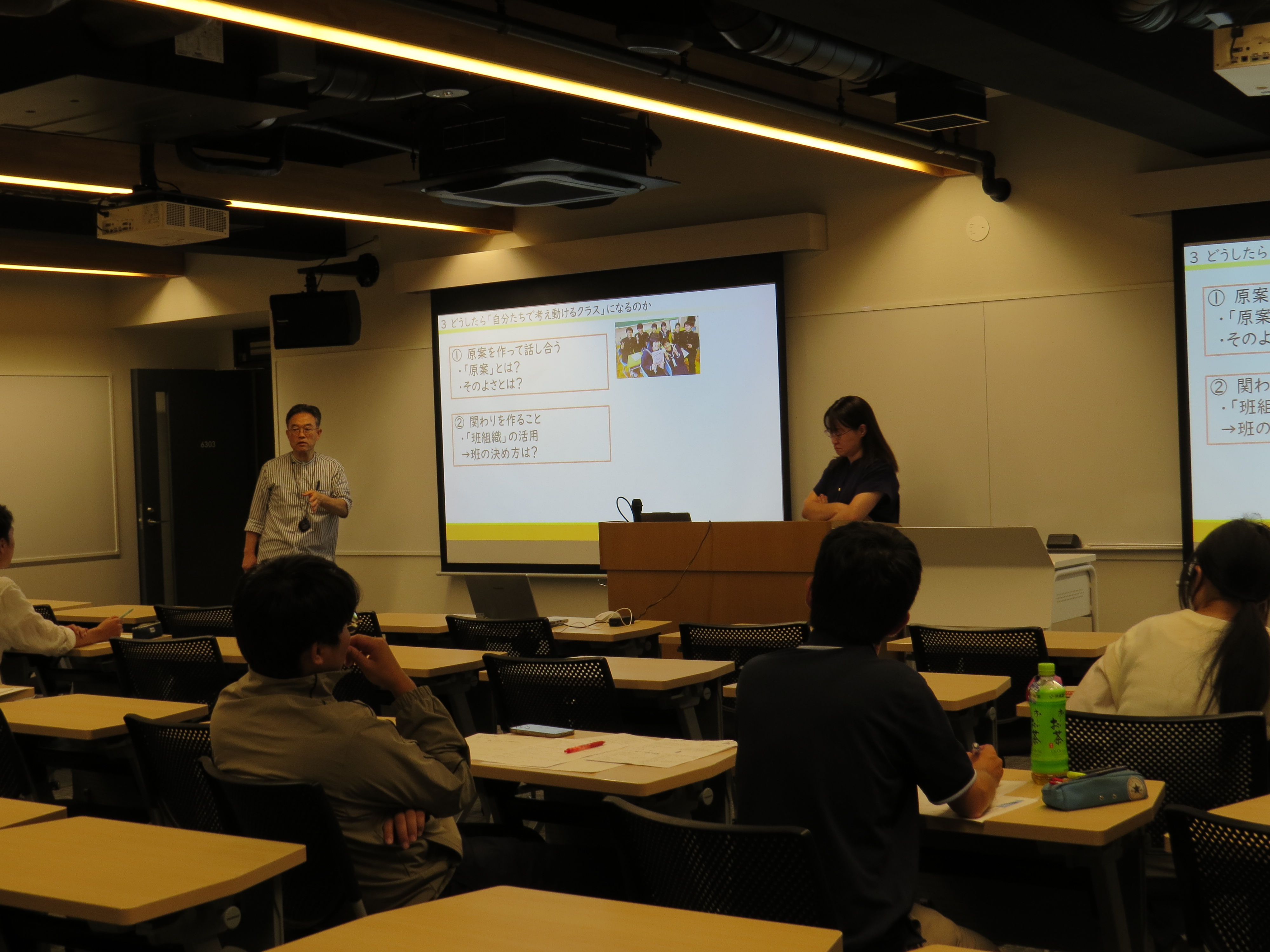 原案の指導について、ものごとを全員で共有し、主体性を身につけることができるのには目を見張った。また、自身の原点が学級づくりに生かされているという話より、私も原点を振り返り、指導を行いたいと思った。(大学1年生)