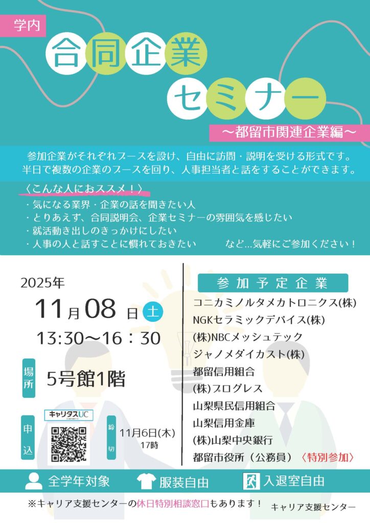 NEWS学内合同企業セミナー ~都留市関連企業編~ を開催いたします